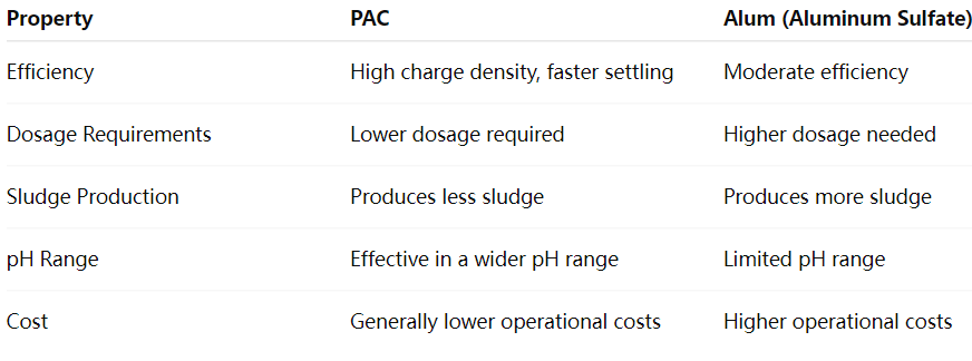 Dissimilis traditional coagulants quasi aluminium (Aluminium sulfate), PAC est notum est superior efficientiam et citius tempore in aquis curatio processibus. Habet excelsum crimen density, faciens praecipue effective ad destabilizing suspensus particulas et formatam maius flocs, quod potest ergo remota per sedimentation vel filtration.